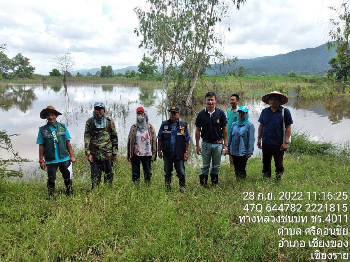 วันที่ 23 กันยายน 2565 นายกิตติพงศ์ วงค์ชัย นายกเทศมนตรีตำบลศรีดอนชัย มอบหมายให้นายคณาธิป บุญมิ่ง หัวหน้าฝ่ายป้องกันและบรรเทาสาธารณภัย พร้อมด้วยน้าที่ป้องกันและบรรเทาสาธารณภัย และภาคส่วน เกษตรอำเภอเชียงของ ผู้ใหญ่บ้าน ม.6 , ผู้ช่วยผู้ใหญ่บ้าน ม.6 บ้านร่องห้า ต.ศรีดอนชัย, ผู้ใหญ่บ้าน ม.5 และผู้ช่วยผู้ใหญ่บ้าน ม.5 ต.ครึ่ง(เขตติดต่อตำบล) ออกสำรวจอุทกภัย(น้ำอิง) พื้นที่การเกษตรของประชาชนที่ได้รับความเดือดร้อน จำนวนหลายแปลง ต.ศรีดอนชัย ม.6 บ้านร่องห้า / ตำบลครึ่ง ม.๕ สวนข้าวโพด ปาล์ม มันสำปะหลัง พริก ส้มโอ ฯลฯ ซึ่งได้รับความเสียหายจากเหตุอุทกภัย (น้ำท่วม)