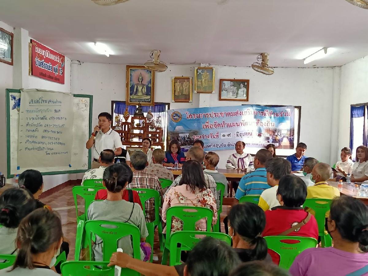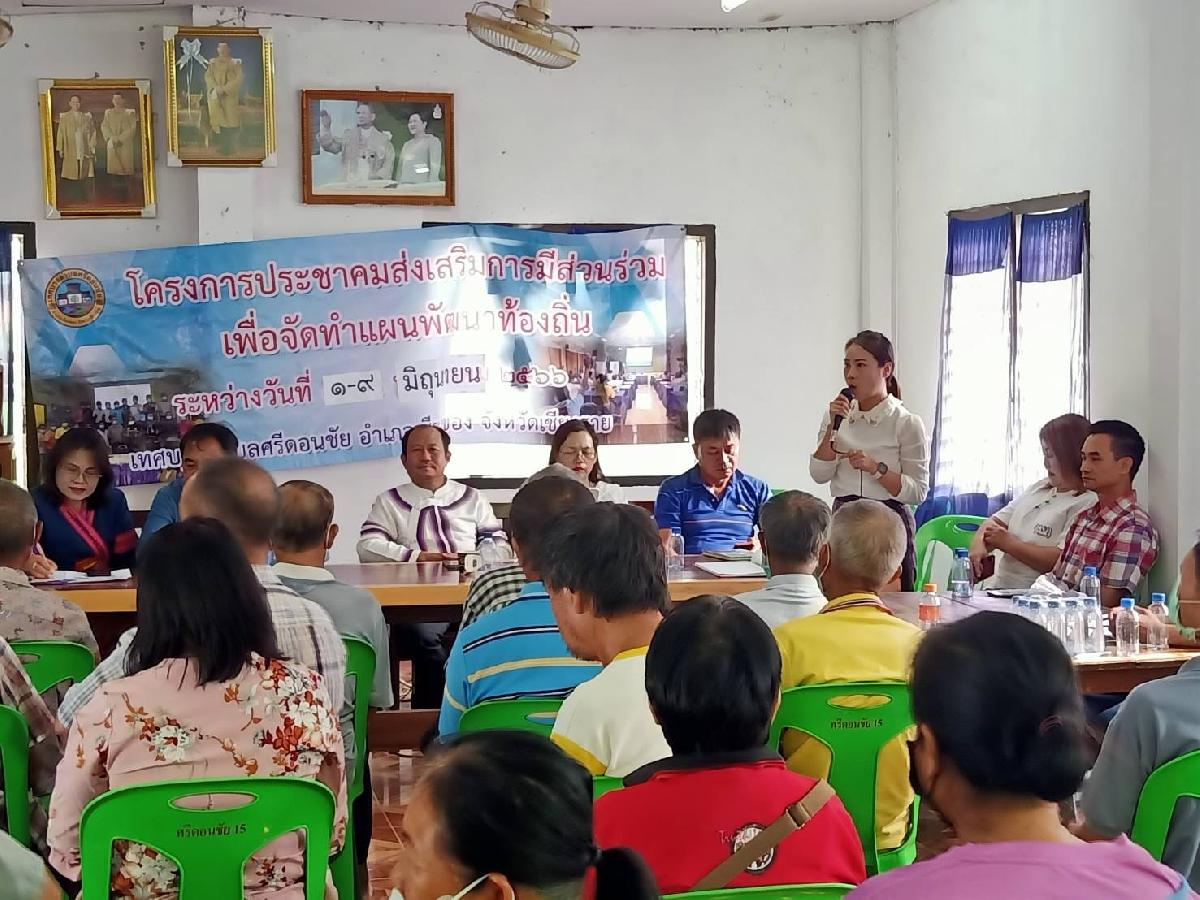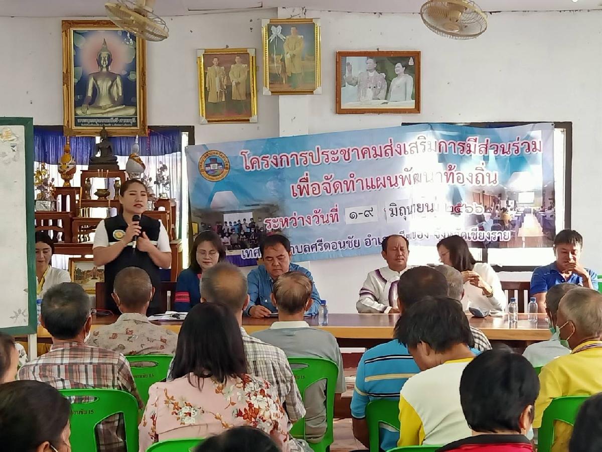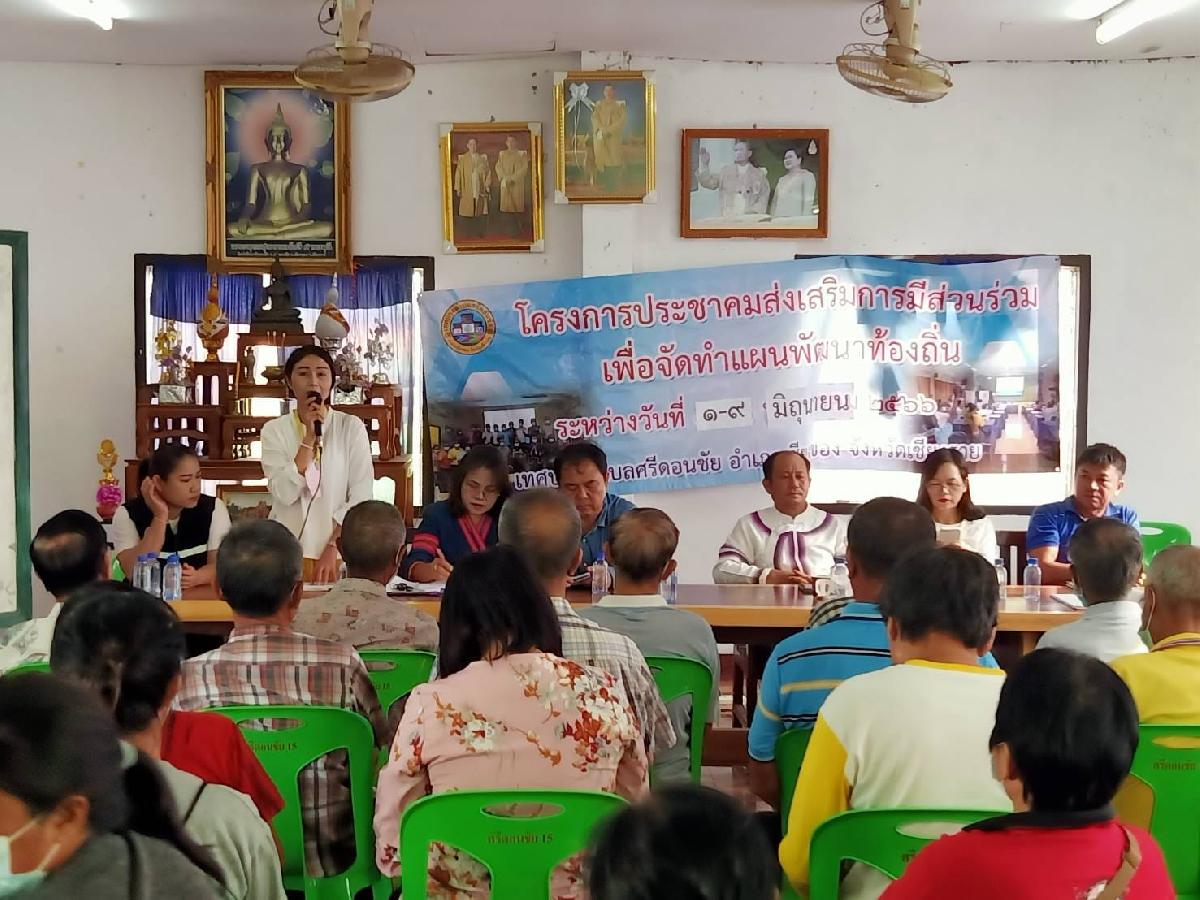 2 มิถุนายน 2566 นายกิตติพงศ์ วงค์ชัย นายกเทศมนตรีตำบลศรีดอนชัย พร้อมด้วยสมาชิกสภาเทศบาลตำบลศรีดอนชัย และพนักงานเทศบาล ได้ออกประชาคม ณ หอประชุมหมู่บ้านบ้านศรีดอนชัย หมู่ 15 ตามโครงการประชาคมส่งเสริมการมีส่วนร่วม เพื่อจัดทำแผนพัฒนาท้องถิ่น ระหว่างวันที่ 1 -31 พฤษภาคม 2566