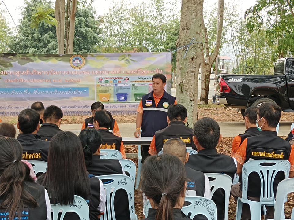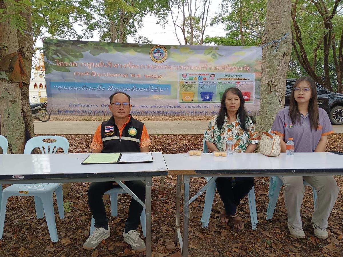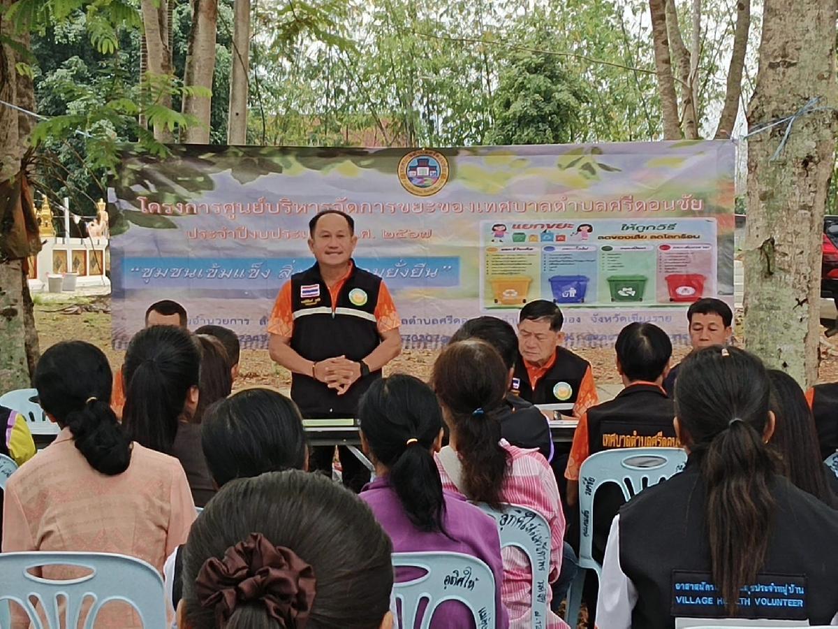 วันที่ 20 มีนาคม 2567 ฝ่ายอำนวยการ สำนักปลัดเทศบาลตำบลศรีดอนชัย โดยนายกิตติพงศ์ วงค์ชัย นายกเทศมนตรีตำบลศรีดอนชัย เจ้าหน้าที่เทศบาลตำบลศรีดอนชัย ดำเนินโครงการศูนย์บริหารจัดการขยะของเทศบาลตำบลศรีดอนชัย ประจำปีงบประมาณ พ.ศ 2567 ซึ่งเป็นโครงการต่อยอดจากปีงบประมาณ 2566 เพื่อสร้างหมู่บ้านต้นแบบ เป็นเครือข่ายของศูนย์บริหารจัดการขยะของเทศบาลตำบลศรีดอนชัย เพื่อส่งเสริมหมู่บ้าน/ชุมชนให้เข้มแข็ง เป็นหมู่บ้านนำร่องมีศักยภาพในการบริหารจัดการขยะมูลฝอยให้เป็นมิตรต่อสิ่งแวดล้อม ลดการปล่อยมลพิษและผลกระทบต่อสิ่งแวดล้อมอย่างยั่งยืน เพื่อสร้างความตระหนักให้ประชาชนมีส่วนร่วมในการจัดการขยะมูลฝอย การคัดแยกขยะมูลฝอย การคัดแยกขยะเปียกในครัวเรือนและชุมชนอย่างถูกวิธีสม่ำเสมอ เพื่อลดปริมาณขยะในการเผาทำลายให้เหลือน้อยที่สุด เพื่อสาธิตการสร้างเตาเผาขยะชีวมวลลดมลพิษให้หมู่บ้านนำร่อง เพื่อมีส่วนร่วมในการลดภาวะโลกร้อน และเพื่อรับรองคาร์บอนเครดิตตามหลักเกณฑ์และวิธีการที่องค์การจัดการระบบก๊าซเรือนกระจก (องค์การมหาชน) กำหนด ณ วัดศรีชัยมงคล หมู่ที่ 12 ตำบลศรีดอนชัย อำเภอเชียงของ จังหวัดเชียงราย โดยมีคณะผู้บริหาร สมาชิกสภาเทศบาล ผู้ใหญ่บ้าน ผู้ช่วยผู้ใหญ่บ้าน อสม.บ้านศรีชัยมงคล เข้าร่วมการอบรมในครั้งนี้