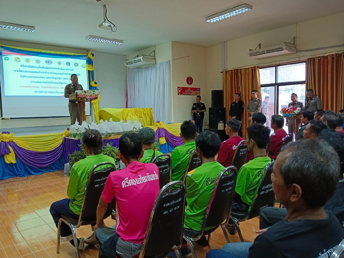 26 เมษายน 2567 ตามนโยบายเร่งด่วนของรัฐบาลที่ให้สำนักงานตำรวจแห่งชาติดำเนินการ "โครงการชุมชนบำบัดอย่างยั่งยืนในตำบลแพร่ระบาดยาเสพติดสูงสุด 100 ตำบล ตามนโยบายเร่งด่วนของรัฐบาล" ตำบลศรีดอนชัย อำเภอเชียงของ จังหวัดเชียงราย เพื่อสร้างความร่วมมือและความเข้มแข็ง ในการแก้ไขปัญหาการแพร่ระบาดของยาเสพติดในชุมชน/หมู่บ้าน เป็นไปอย่างยั่งยืน หยุดยั้งการแพร่ระบาดยาเสพติดในหมู่บ้าน/ชุมชน และเพื่อลดปัญหาอาชญากรรมที่ต่อเนื่องจากปัญหายาเสพติดภายในชุมชน/หมู่บ้าน