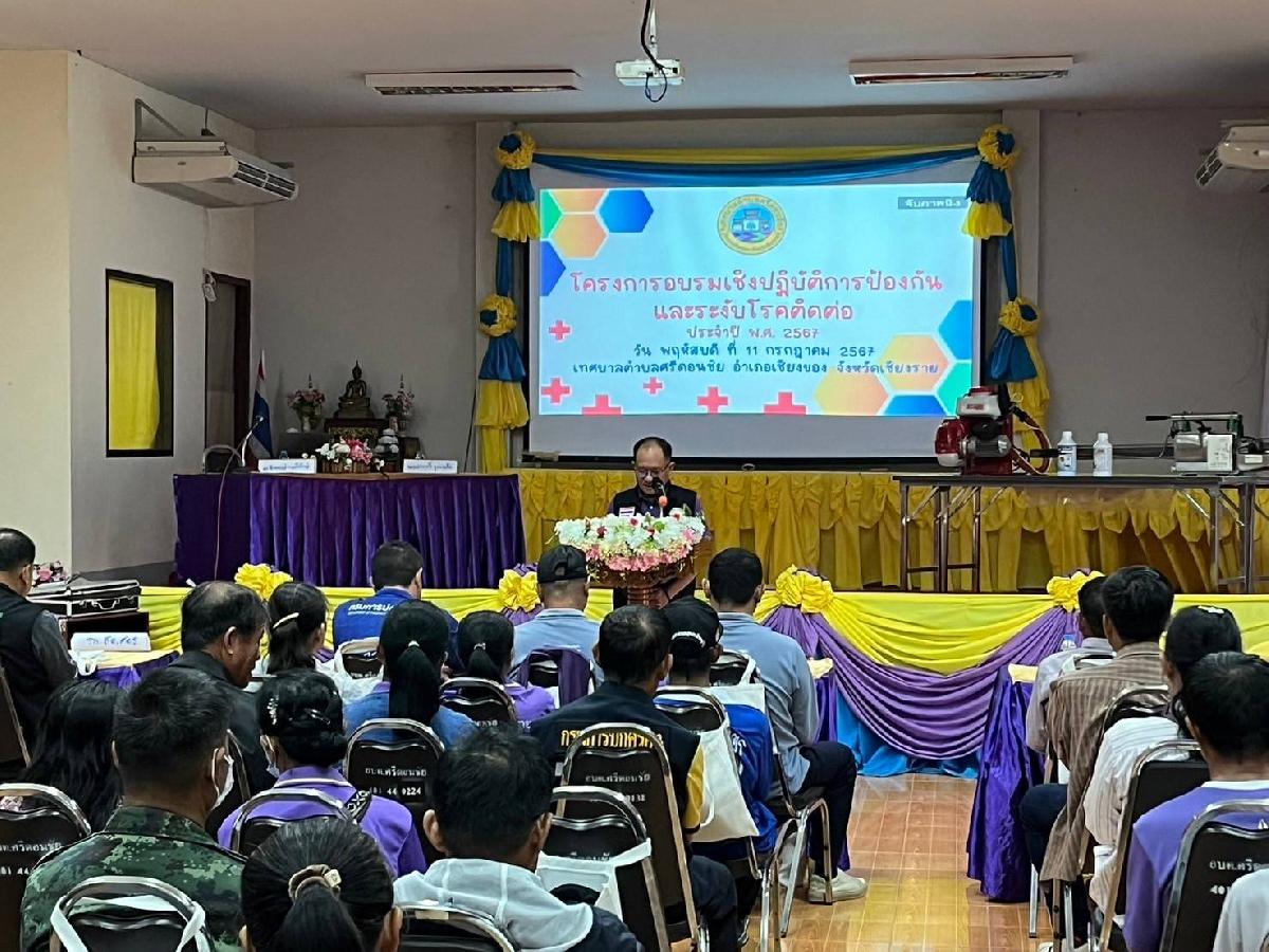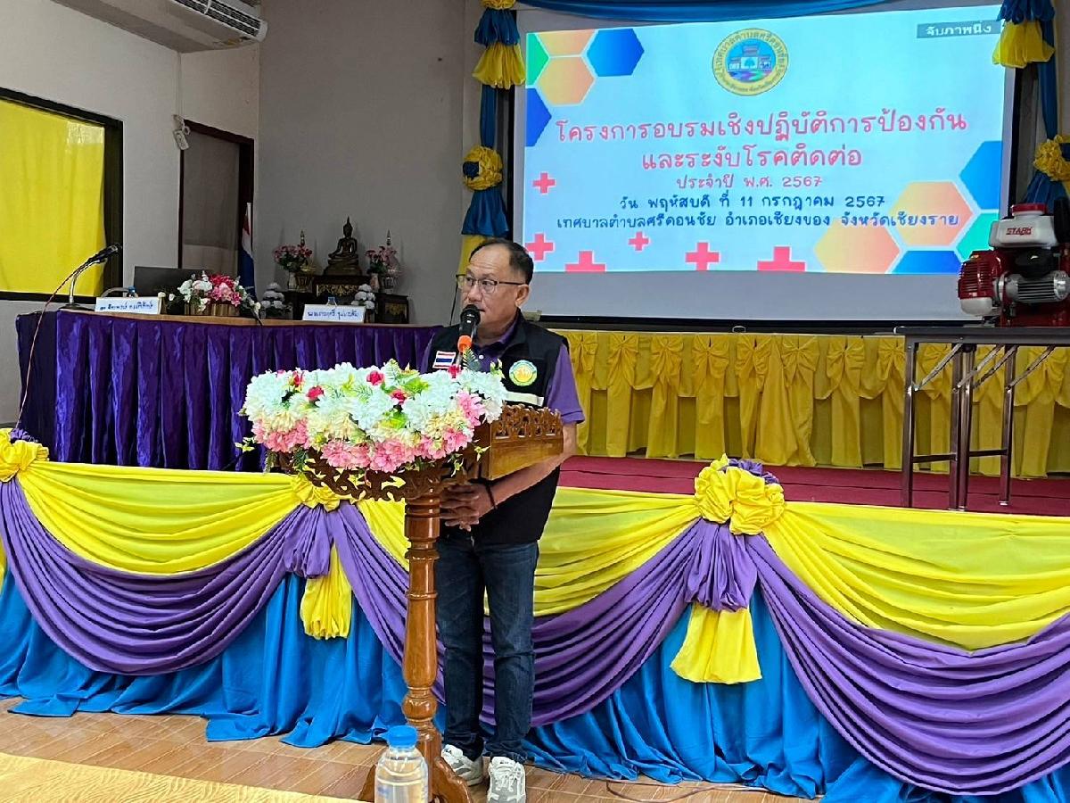 เทศบาลตำบลศรีดอนชัย ได้กำหนดจัดโครงการอบรมเชิงปฏิบัติการป้องกันและระงับโรคติดต่อ ประจำปีงบประมาณ พ.ศ. 2567 เพื่อให้ผู้เข้ารับการอบรมได้รับความรู้ความเข้าใจโรคติดต่อ การป้องกัน การะงับ การเฝ้าระวัง และควบคุมโรคติดต่อและโรคอื่นที่อุบัติใหม่ บทบาทหน้าที่ และการพ่นหมอกควันและการพ่นละอองฝอยกำจัดยุงลายแมลง โดยได้เชิญวิทยากรจากศูนย์ควบคุมโรคติดต่อนำโดยแมลงที่ 1.3 เชียงราย