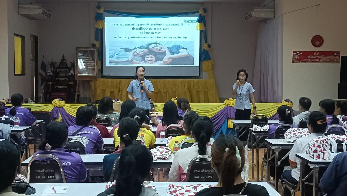 เทศบาลตำบลศรีดอนชัย ได้ให้ความสำคัญในด้านสาธารณสุข ของพี่น้องประชาชนตำบลศรีดอนชัย ให้ครอบคลุมหลากหลายมิติ จึงได้จัดโครงการอบรมส่งเสริมสุขภาพเชิงรุกเพื่อลดภาวะคลอดก่อนกำหนด ประจำปีงบประมาณ 2567 วัน ศุกร์ ที่ 30 สิงหาคม 2567 เป้าหมาย หญิงตั้งครรภ์ หญิงเตรียมความพร้อม ผู้ดูแล อสม. วิทยากรโดย คุณดลหทัย จตุรคเชนทร์เดชา พยาบาลวิชาชีพชำนาญการ และ คุณวารุณี อุดมพล พยาบาลวิชาชีพชำนาญการ จากโรงพยาบาลสมเด็จพระยุพราชเชียงของ