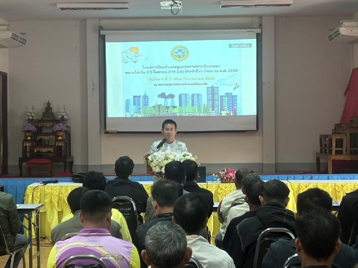 วันที่ 7 มกราคม 2568 ได้ร่วมกันจัดโครงการป้องกันและดูแลสุขภาพจากฝุ่นละอองขนาดไม่เกิน 2.5 ไมครอน (PM 2.5) เพื่ออบรมให้ความรู้ประชาชนกลุ่มเสี่ยงได้มีความรู้ ความเข้าใจ ในการป้องกันตนเองจากภัยฝุ่นละออง PM 2.5 และวิธีการป้องกันตนเองที่ถูกต้อง