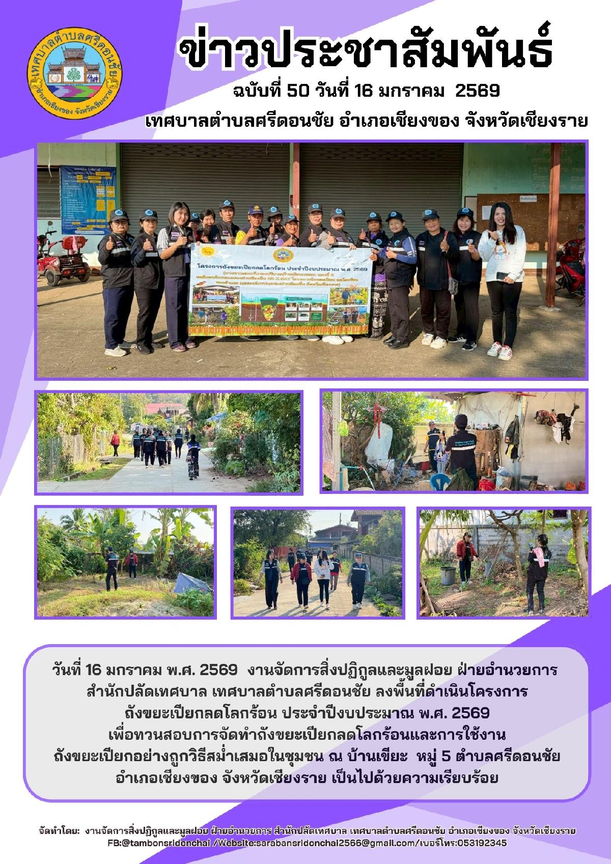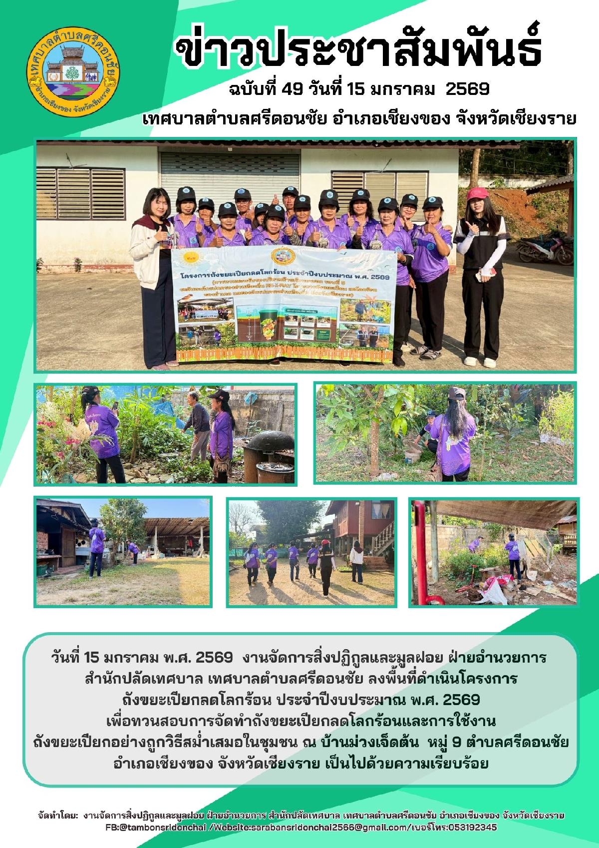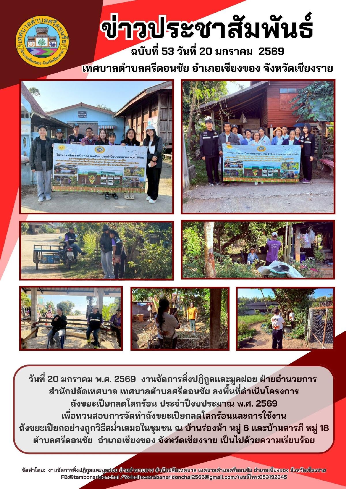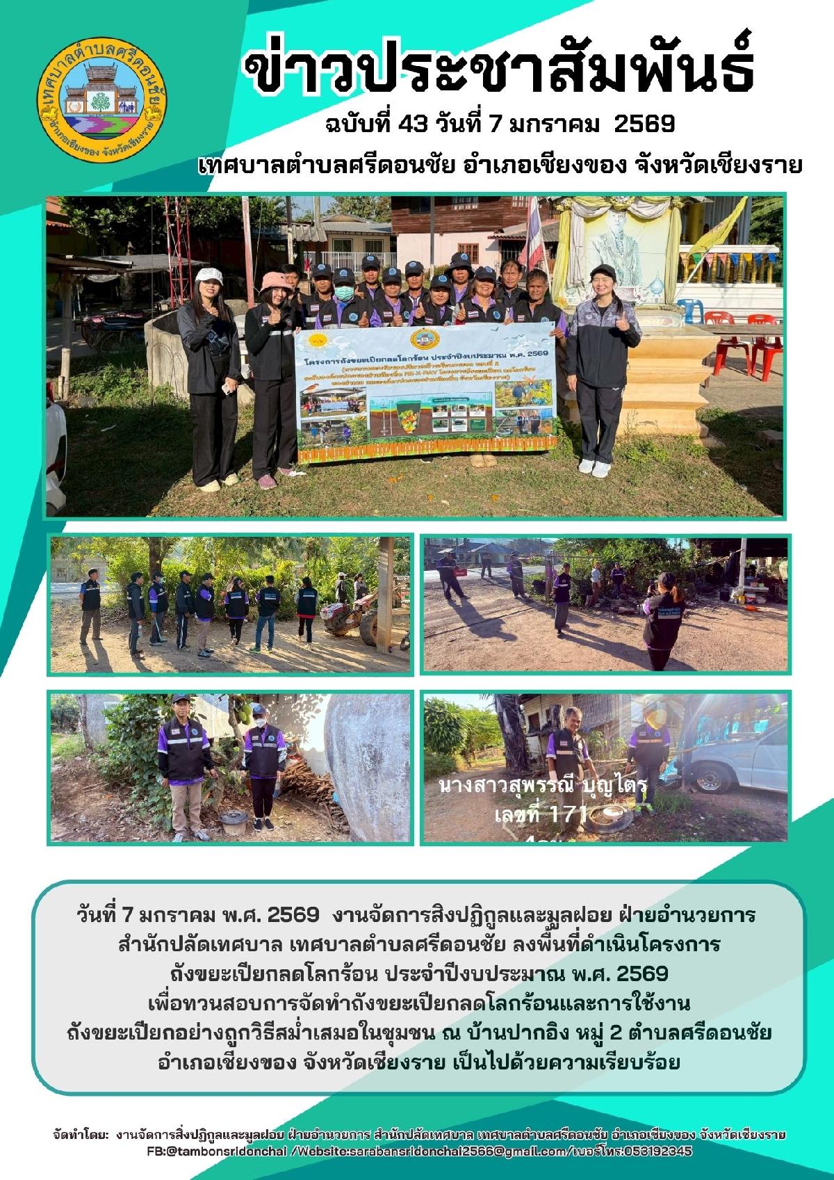 โครงการถังขยะเปียกลดโลกร้อน ณ บ้านศรีมงคล หมู่ 14 และบ้านศรีดอนชัย หมู่ 15 ประจำปีงบประมาณ พ.ศ. 2569