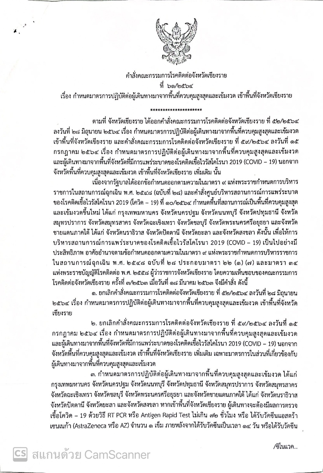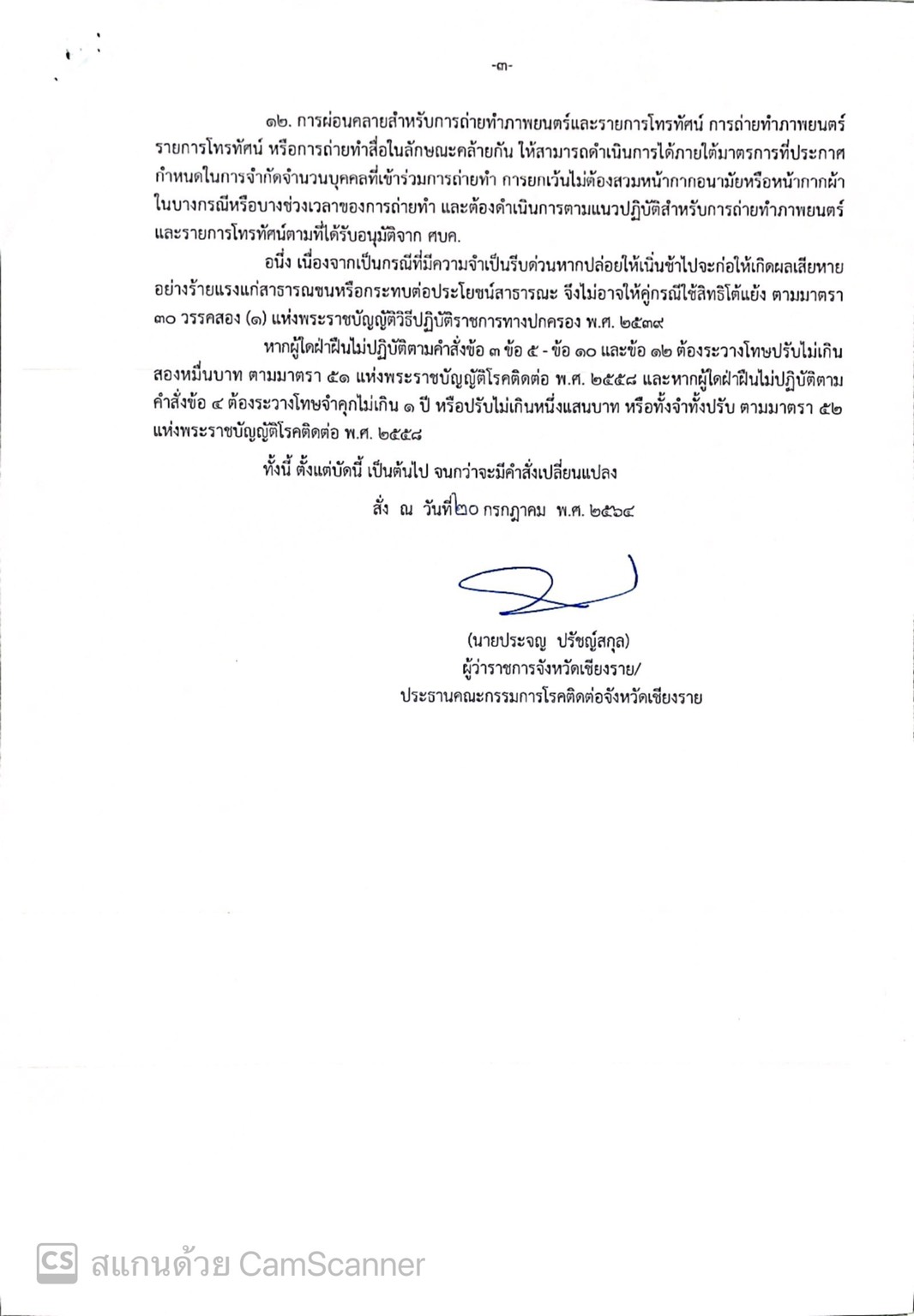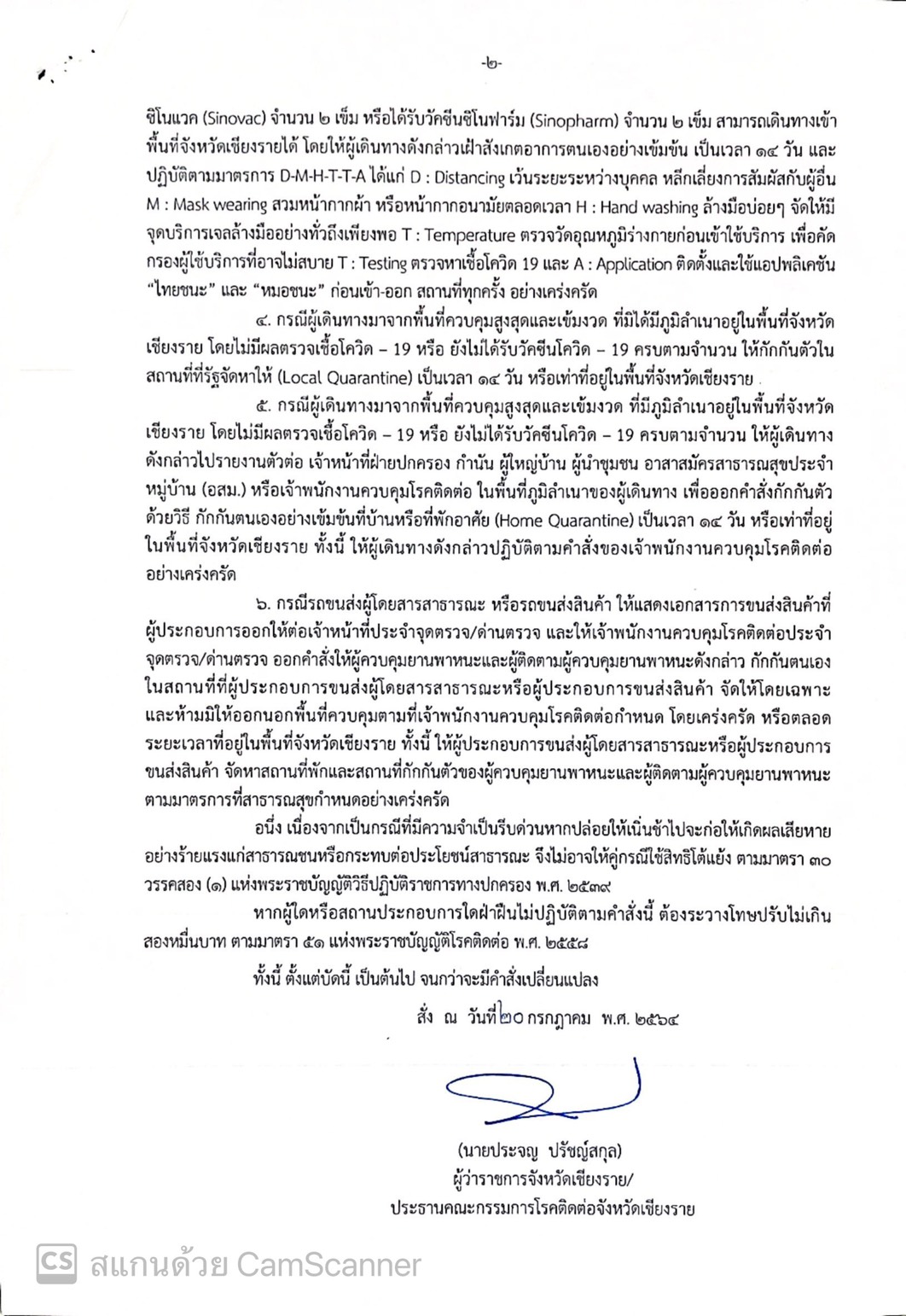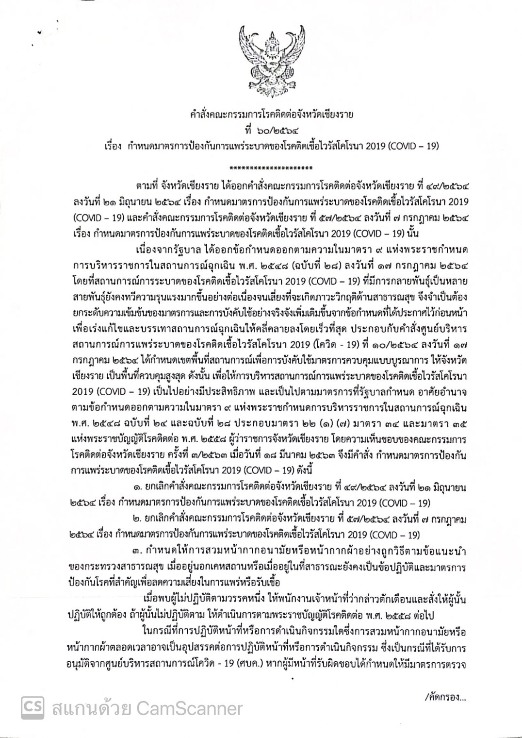 เน้นย้ำการปฏิบัติตามคำสั่งคณะกรรมการโรคติดต่อจังหวัดเชียงราย