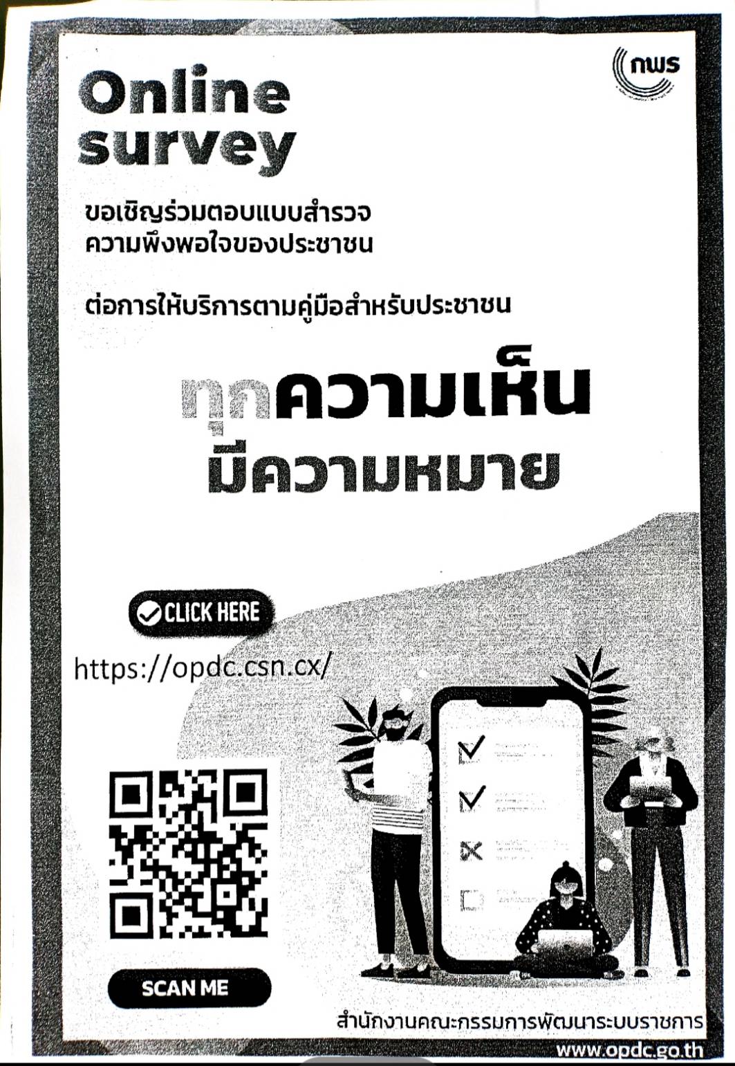 ขอเชิญร่วมตอบแบบสำรวจความพึงพอใจของประชาชนต่อการให้บริการตามคู่มือสำหรับประชาชนทุกความเห็นมีความหมาย