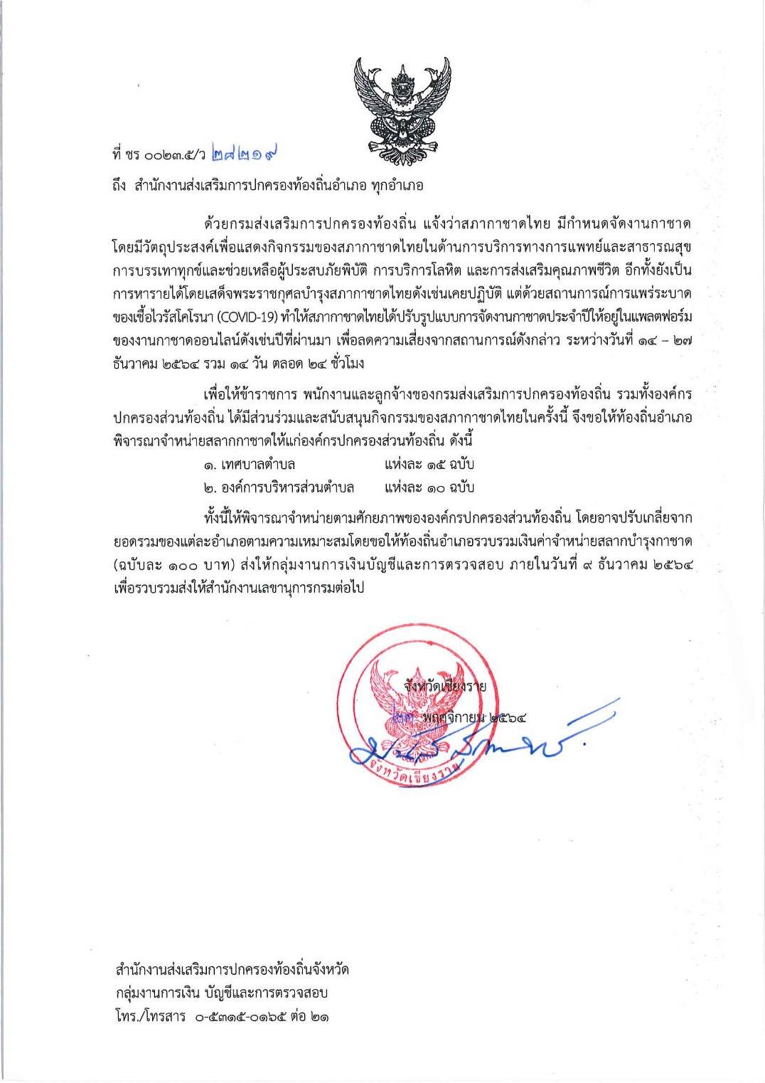 ด้วยผู้ว่าราชการจังหวัดเชียงราย สั่งการให้ทุกอำเภอเปิดบริการฉีดวัคซีนให้แก่ประชาชนในทุกพื้นที่ จึงขอกำนัน ผู้ใหญ่บ้าน ทุกหมู่บ้าน ประชาสัมพันธ์เชิงรุกให้ประชาชนในหมู่บ้านที่ยังไม่ฉีดวัคซีนดำเนินการ ดังนี้