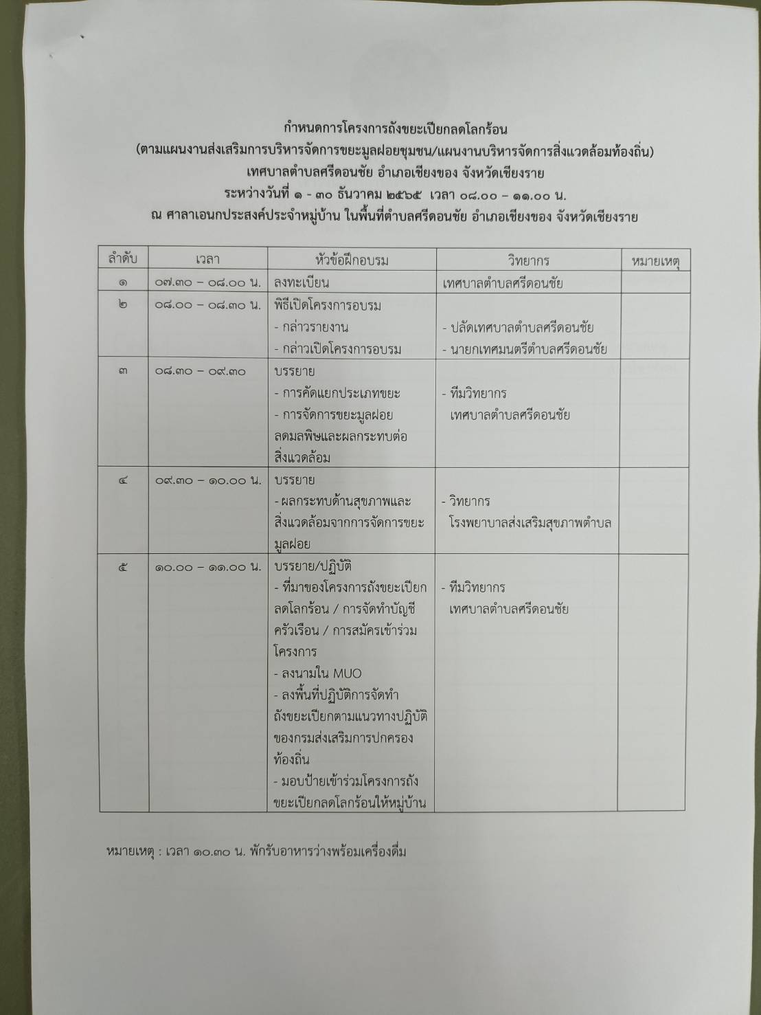 หมายเหตุ : ตารางการอบรมอาจเปลี่ยนแปลงได้ตามความเหมาะสม