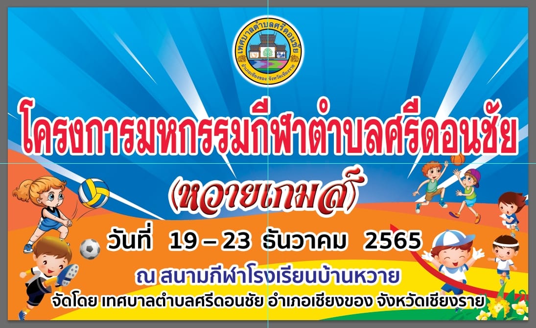 เทศบาลตำบลศรีดอนชัย ขอเชิญชวนร่วมกิจกรรมมหกรรมกีฬาตำบลศรีดอนชัย (หวายเกมส์) ระหว่างวันที่ิ 19 - 23 ธันวาคม 2565 ณ สนามโรงเรียนบ้านหวาย ตำบลศรีดอนชัย อำเภอเชียงของ จังหวัดเชียงราย