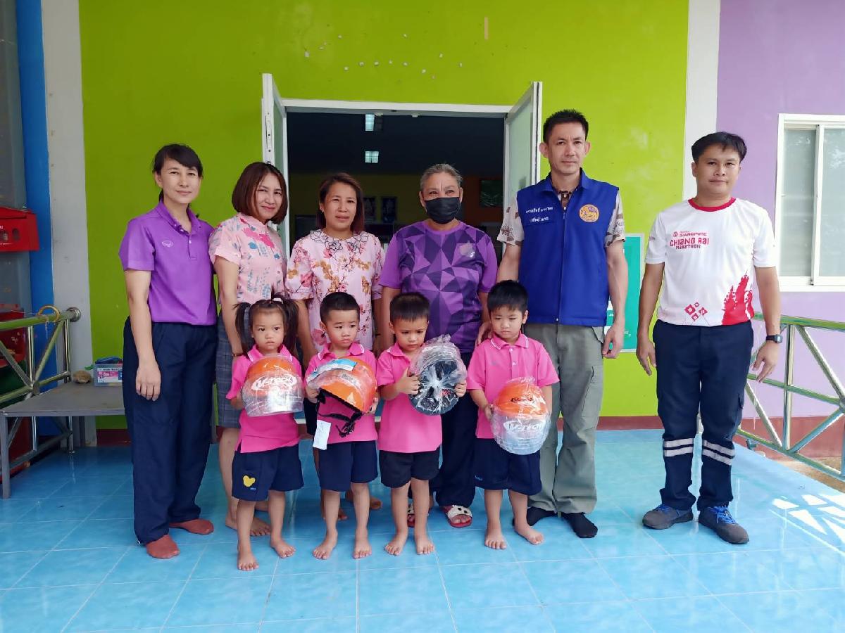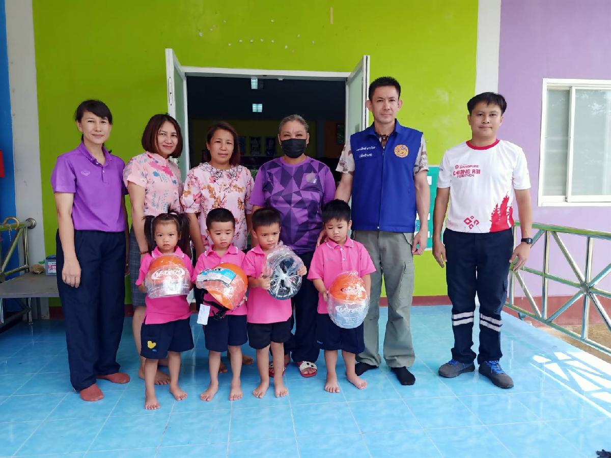 เมื่อวันที่ 16 สิงหาคม 2566 เวลาประมาณ 13.30 น. นายกิตติพงศ์ วงค์ชัย นายกเทศมนตรีตำบลศรีดอนชัย มอบหมายให้นางมยุรี เมฆอากาศ นักวิชาการศึกษาและนายอัครพล บุดดี เจ้าพนักงานป้องกันบรรเทาสาธารณภัย พร้อมด้วยคณะครูศูนย์พัฒนาเด็กเล็กเทศบาลตำบลศรีดอนชัย 1 ตำบลศรีดอนชัย อำเภอเชียงของ จังหวัดเชียงราย รับมอบหมวกกันน็อค จำนวน 4 ใบ จากอำเภอเชียงของ ตามโครงการ "ครอบครัวสุขสัน ใส่หมวกกันน็อคทุกคน"