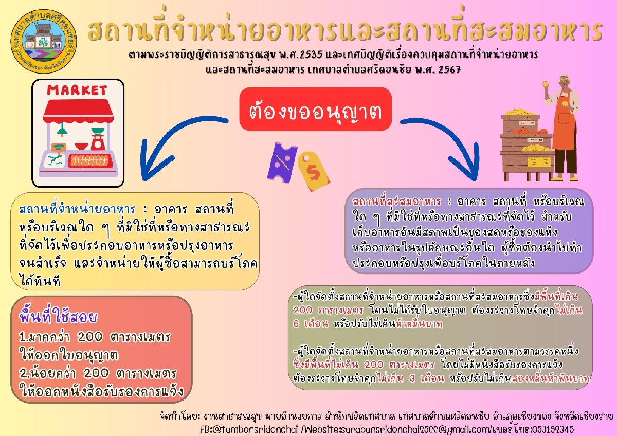 ประชาสัมพันธ์ งานสาธารณสุข เรื่องการขอใบอนุญาตสถานที่จำหนายอาหารและสถานที่สะสมอาหาร