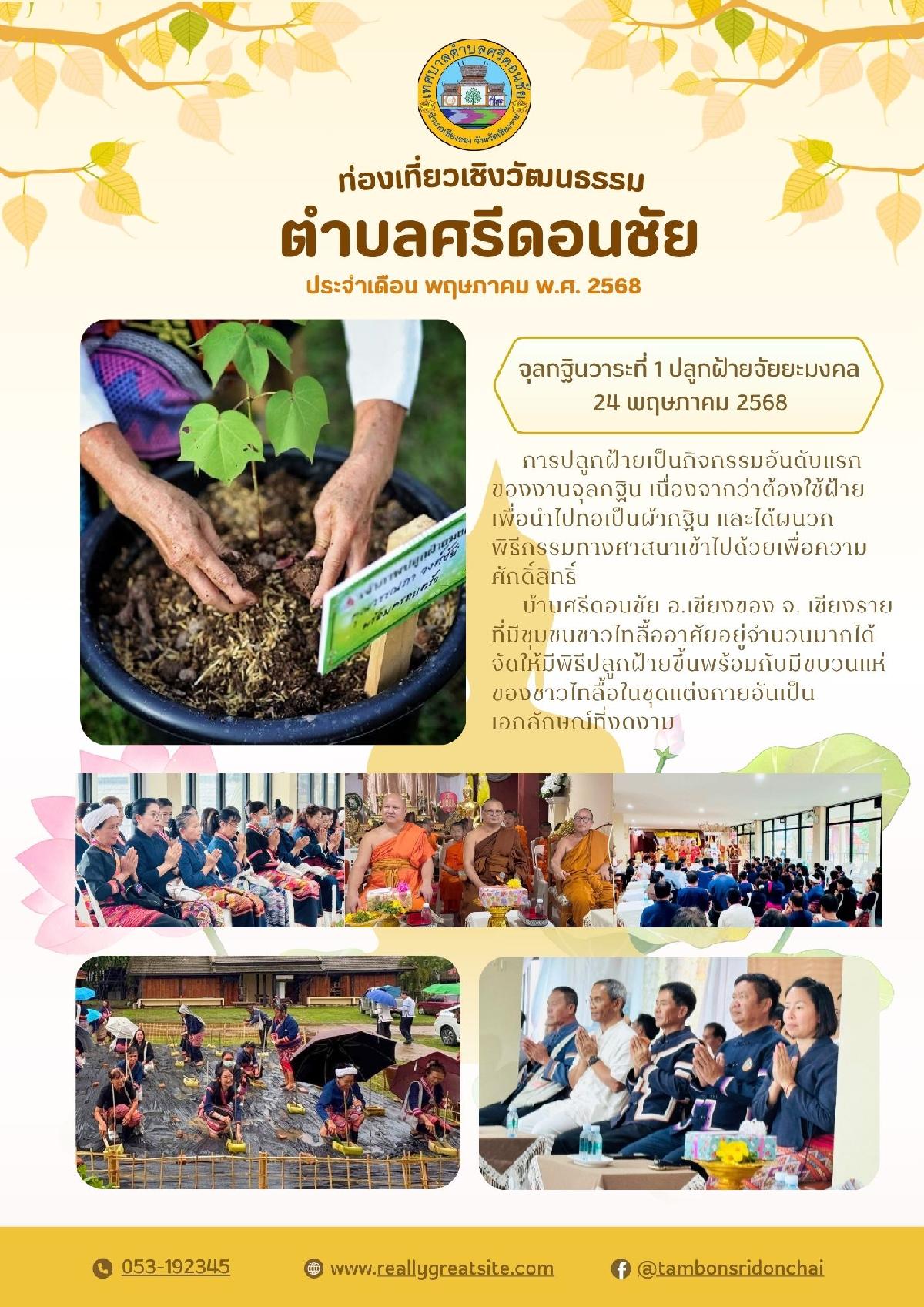 บ้านศรีดอนชัย อ.เชียงของ จ. เชียงราย ที่มีชุมชนชาวไทลื้ออาศัยอยู่จำนวนมากได้จัดให้มีพิธีปลูกฝ้ายขึ้นพร้อมกับมีขบวนแห่ของชาวไทลื้อในชุดแต่งกายอันเป็นเอกลักษณ์ที่งดงาม